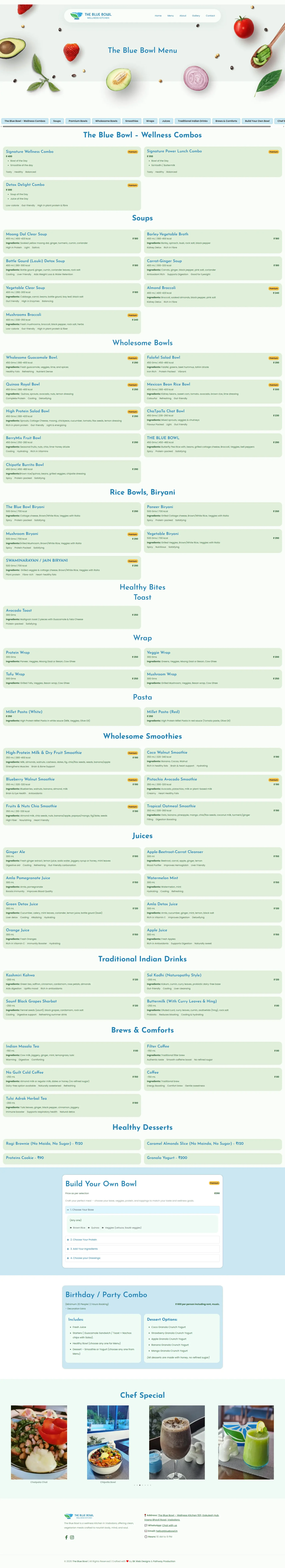 A mobile-first one-page wellness kitchen website with fresh organic visuals, animated ingredients, and a sleek menu flow designed for quick browsing and fast action.